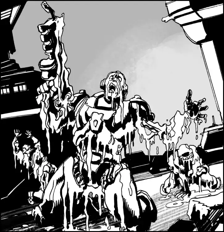 Keen observers will note that this makes the Radstorm an effectively one-shot weapon, and in many cases this is borne out in combat engagements. No effort is made to retrieve or reuse Radstorm devices, despite their obvious cost. There are, however, accredited reports of Pact zeoforms rearming Radstorm devices during combat conditions. Most notably, the Amaroq type Master-Rig appears to have an internal bay capable of constructing Radstorm devices, presumably using a technique akin to the GuardCorps’ Nanoforge ammunition system and a stockpile of requisite components. The persistent idea that Pact armorers simply adapt Radstorm devices out of spent fuel rods and discarded reactor housings is so ridiculous that I refuse to engage with that particular debate any further: Patently, No. They. Don't.