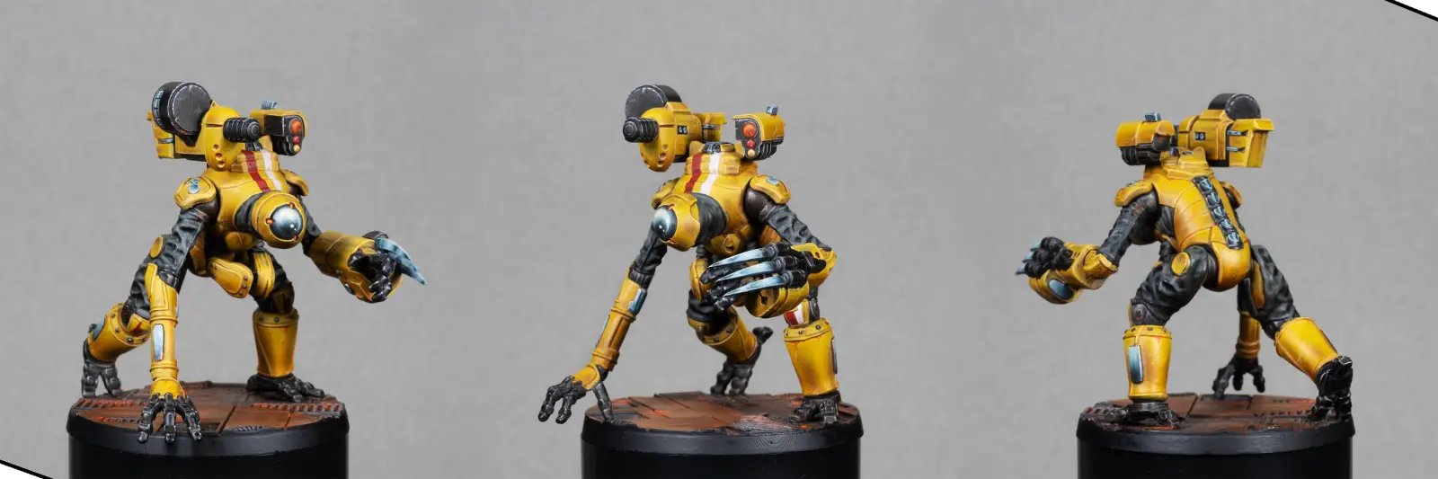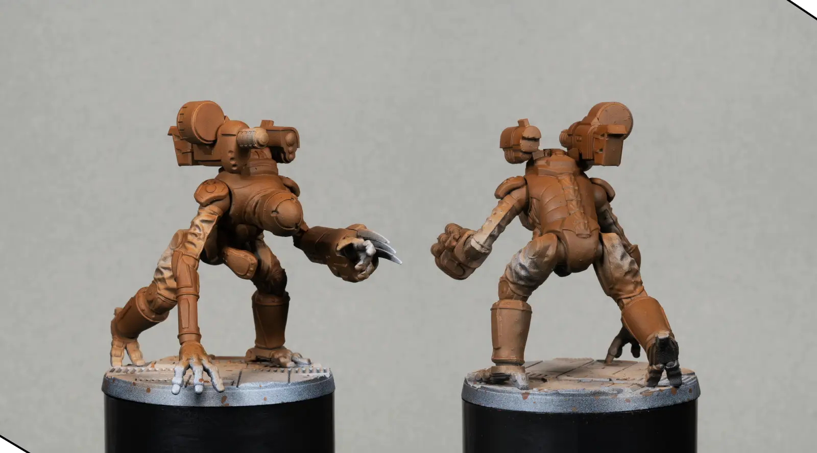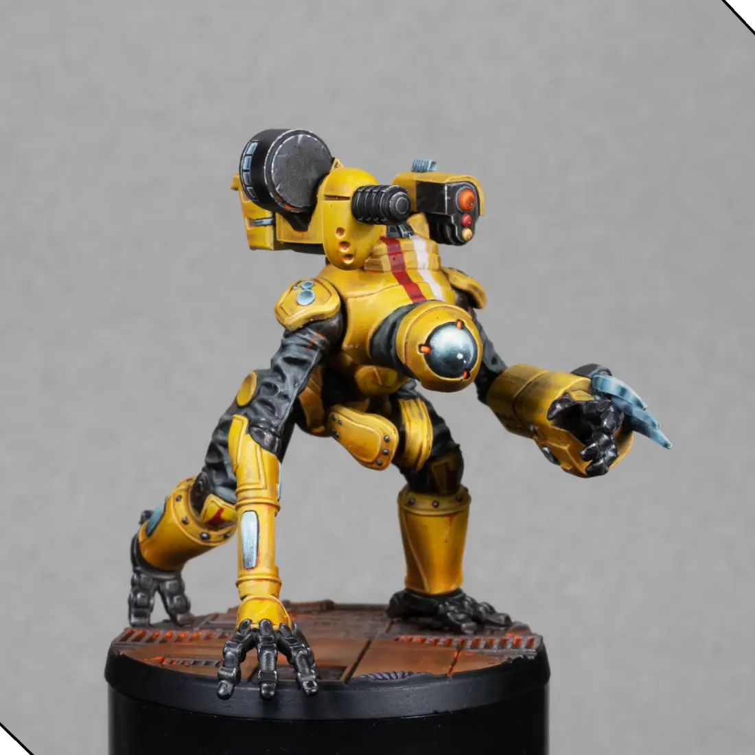 Hello everyone, I’m Julián. In this tutorial, I’m going to show you how I painted this Rakke Exo-rig Zeoform, a very fun miniature full of mechanical shapes and panels that make it great for building volumes and achieving a clean, striking finish. I’ll walk you through the whole process step by step: priming, base colors, lighting, details, and a few simple tricks to get a smooth and high-contrast result.