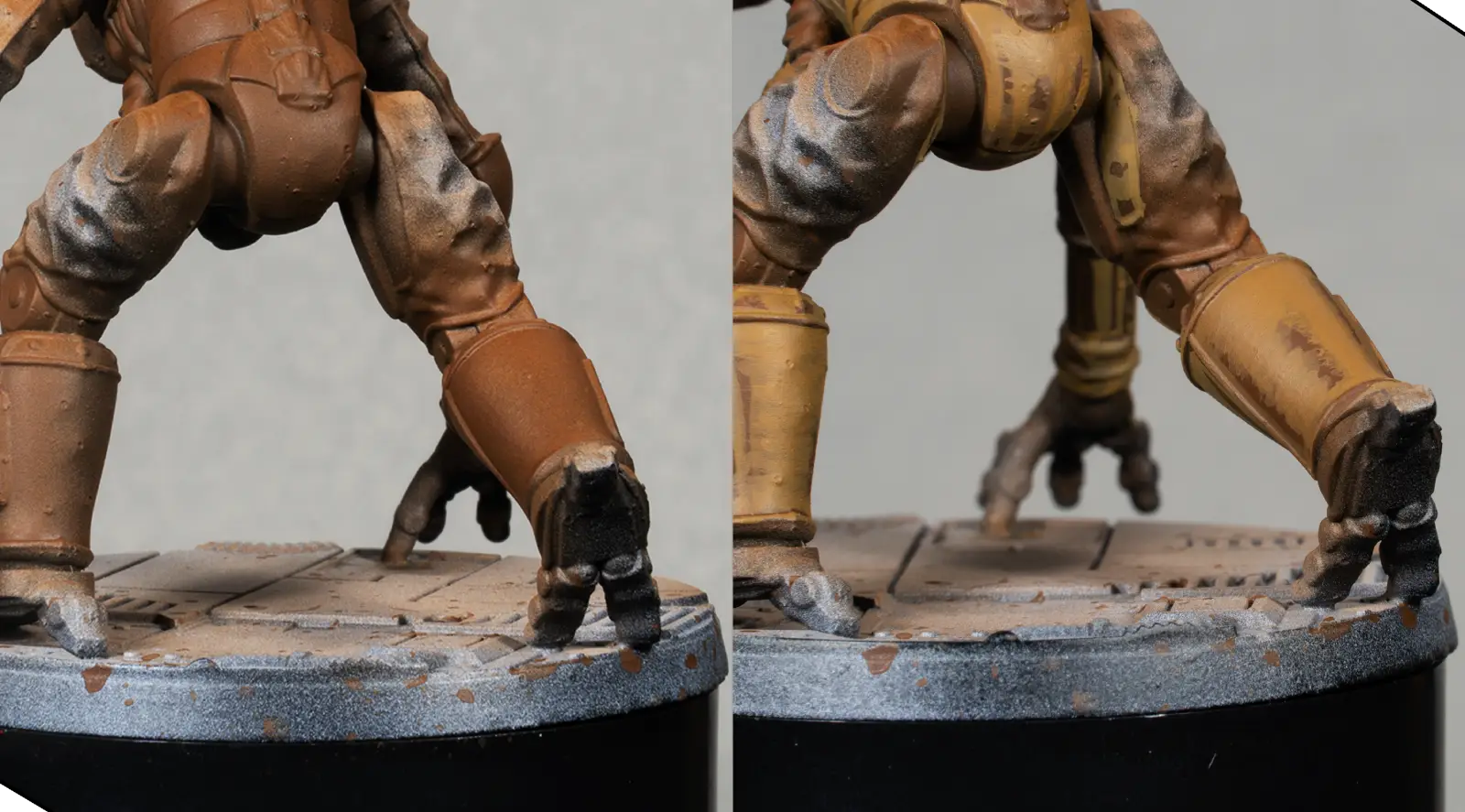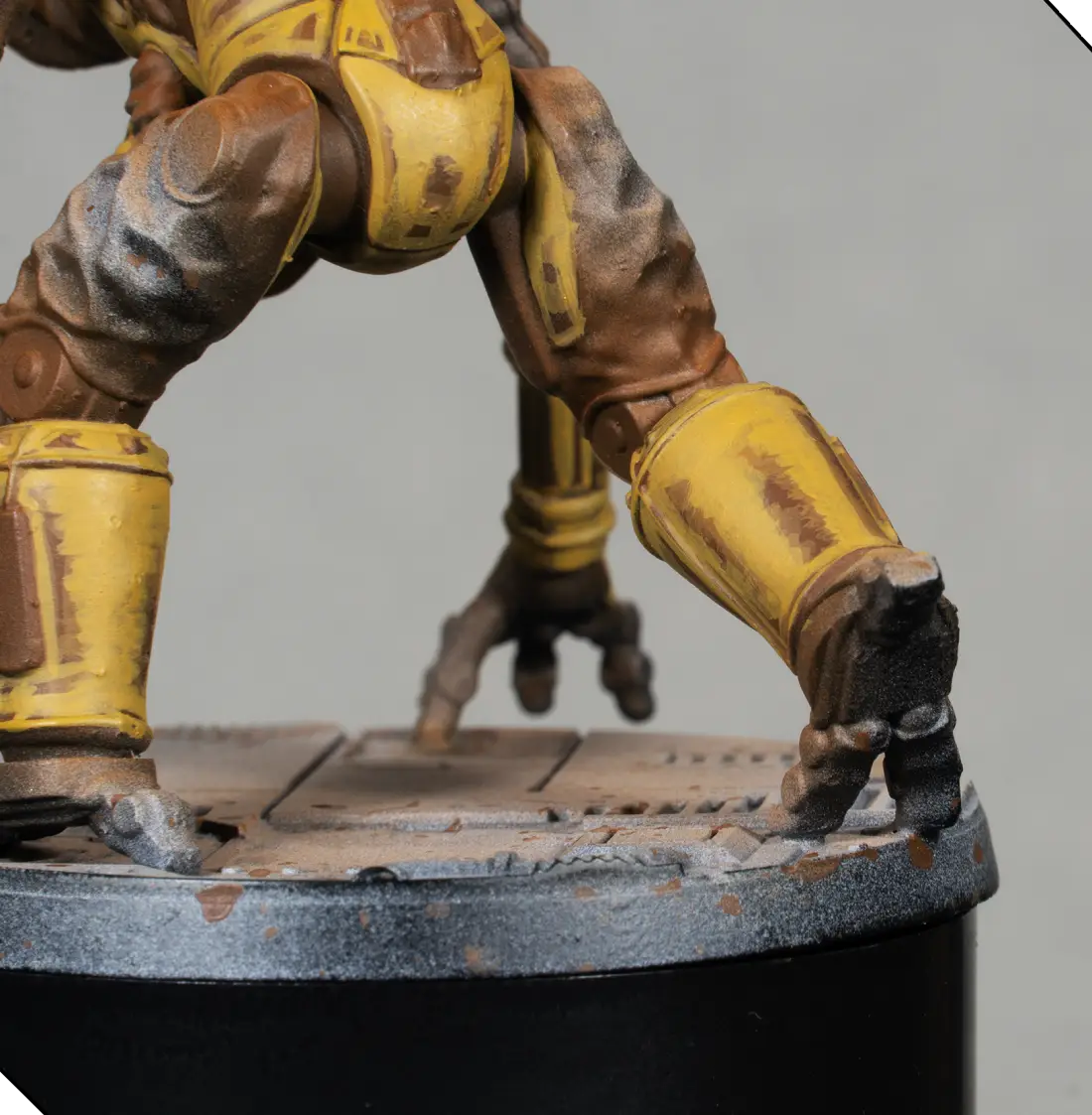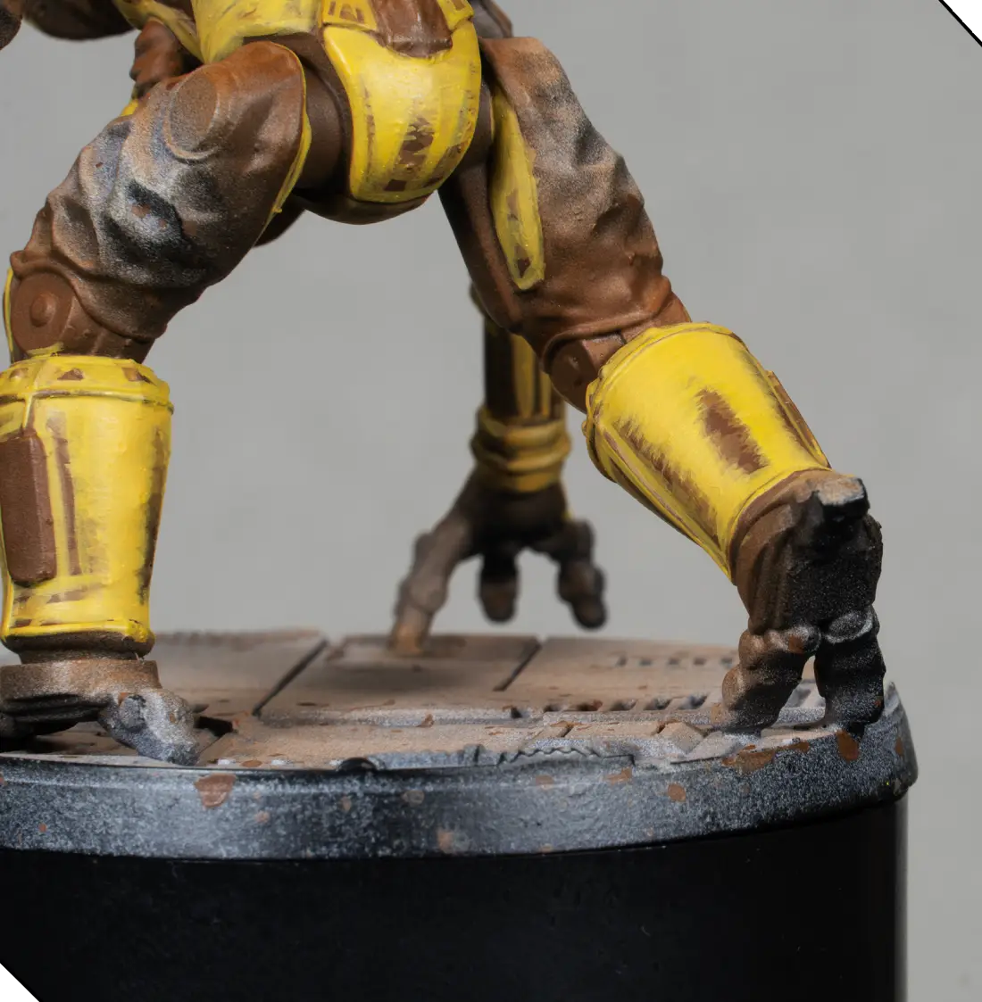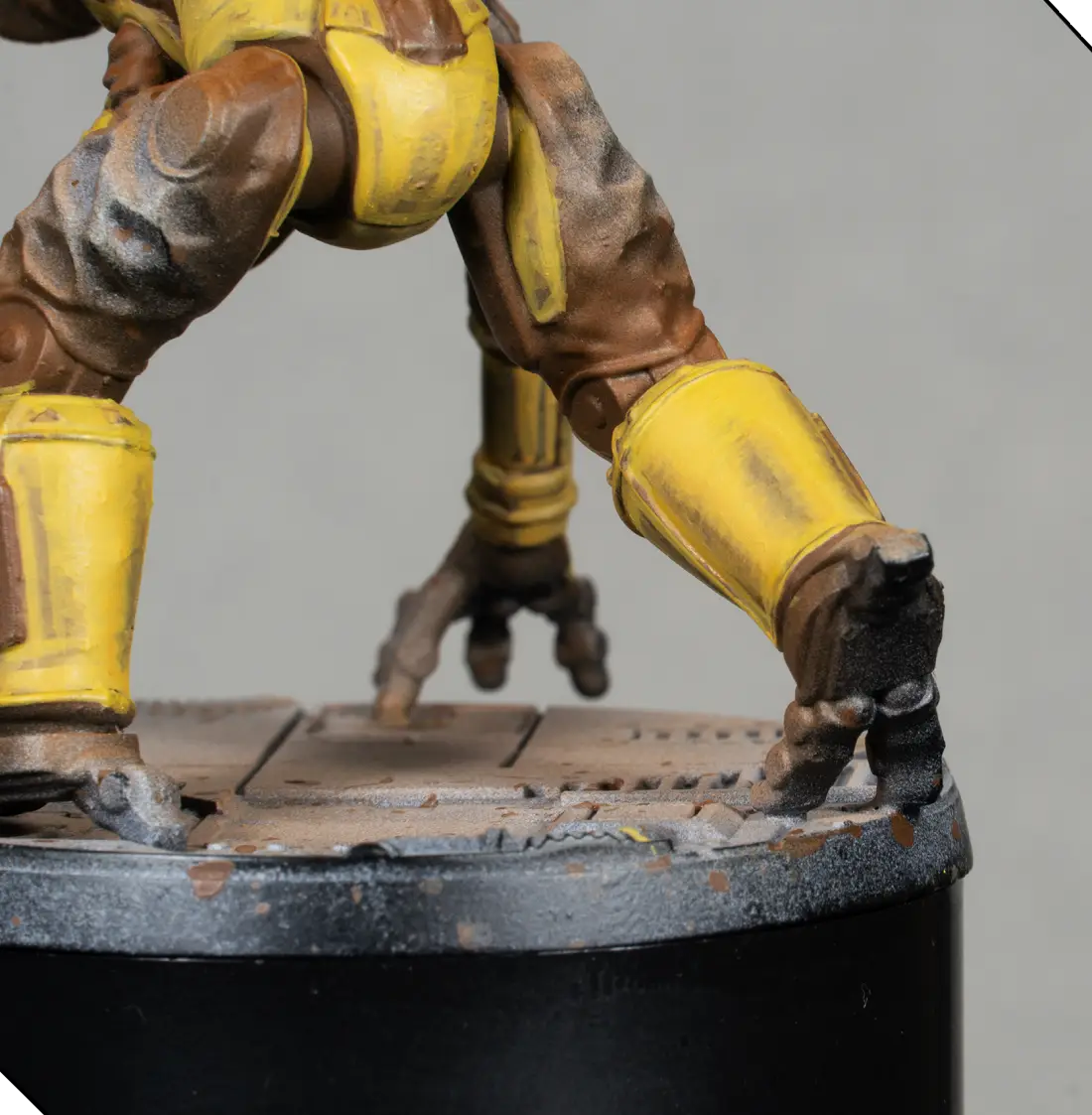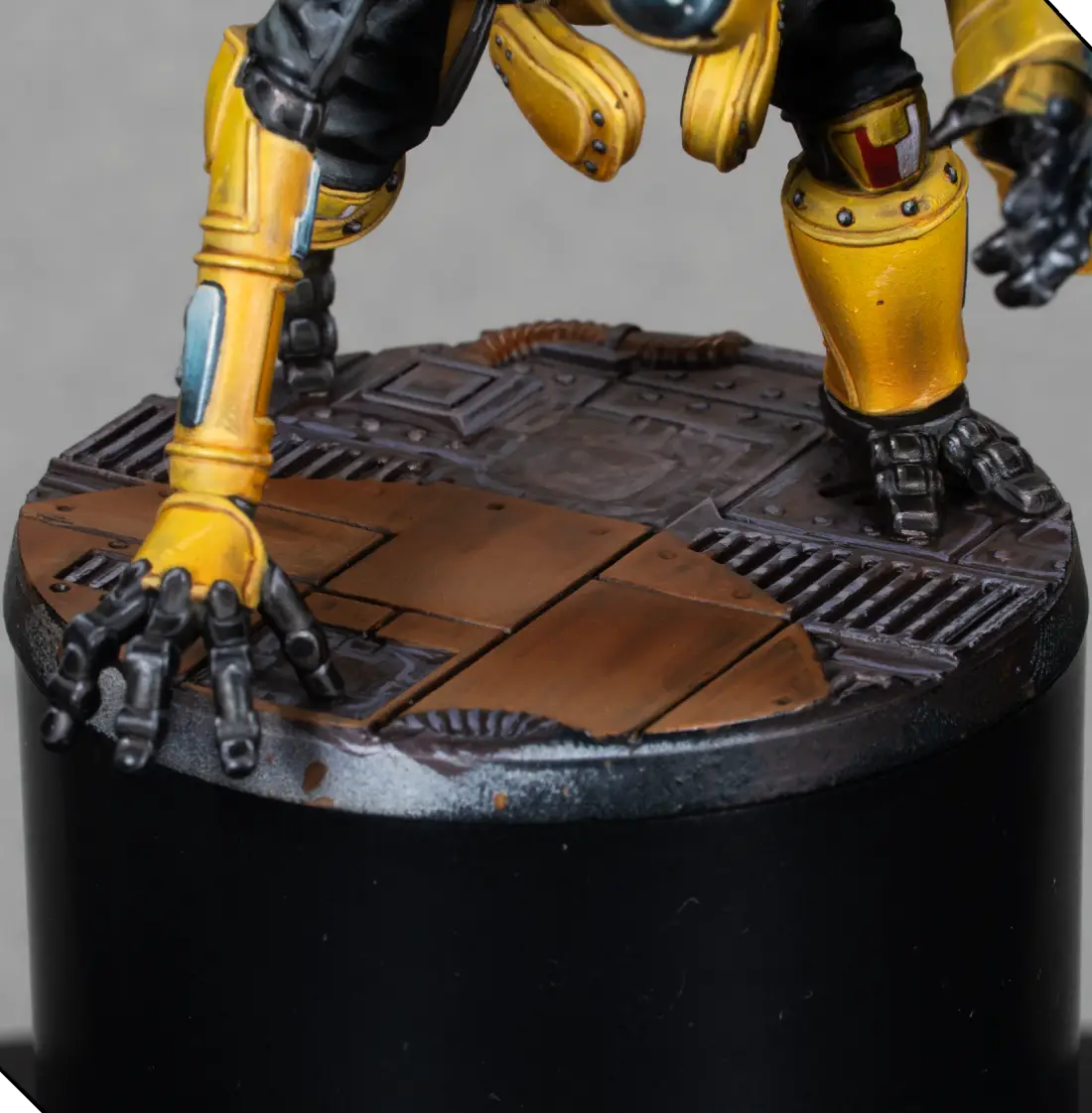 Using the same orange, I add small rust spots on the miniature itself—on dark metal areas, joints, plate edges, and recesses. These must be very minimal to keep the model clean.