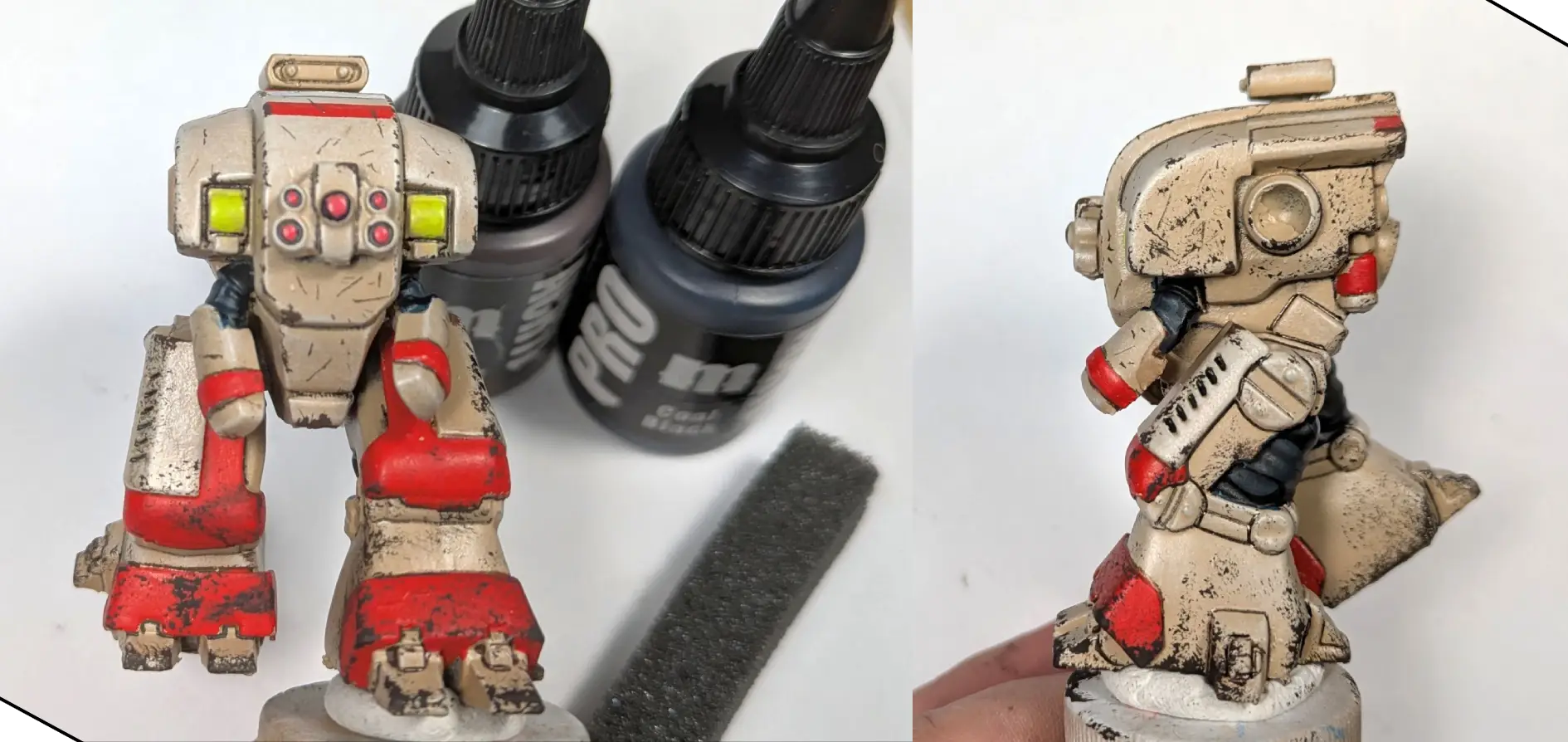 At this point I have a battleworn suit that is ready to take on any Pact threat, but we can dial it up another notch and bring the two pieces together with some dry pigments.