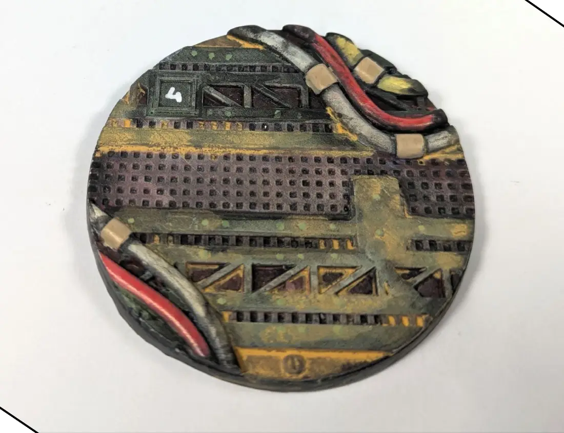 For the last step, I used a heavy wash of the Burning Sands pigment to highlight the edges and help unify the base with the model.