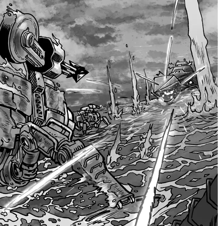 “The Krezvitz Square public holos showed Aegina’s combat aqua-zeos battling to stop the Braznov, but nothing they carried could make a dent. Close-in weapon systems were handily holding off the aqua-zeos, but their agility kept them safe, appearing to skate on the water. Good for the pilots, but for the bombarded citizenry, they might’ve well not been there.”